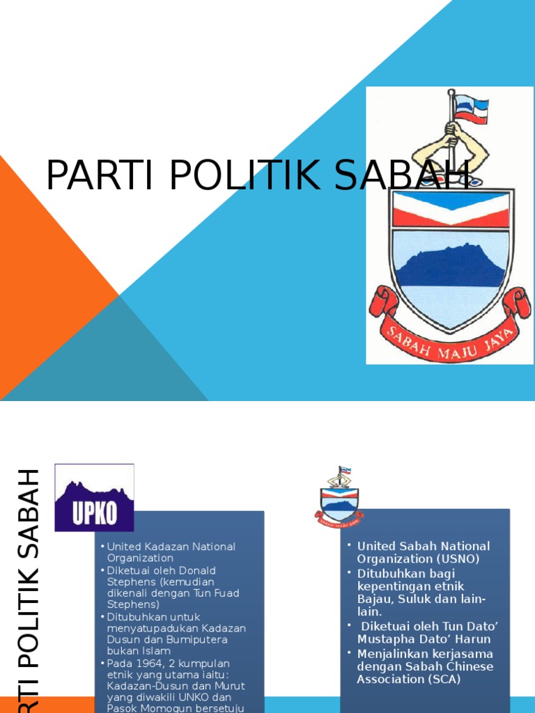 PARTI KEBANGSAAN SABAH PKS SABAH. Contohnya SUPP berideologi sosialis dan dipengaruhi fahaman komunis. Pada tahun 1961 United Sabah National Organization USNO dan United National Kadazan Organization UPKO Borneo Utara National Party BUNAP gabungan United Party dan Democratic Party Parti United Pasok Momogun dan Sabah Indian.